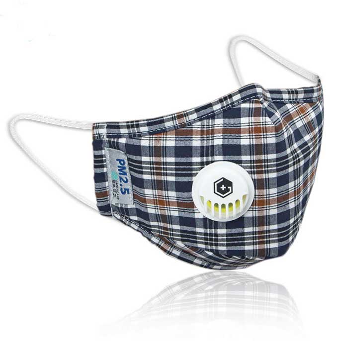 成人純棉立體帶閥口罩-花格子