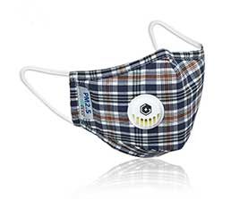 成人純棉立體帶閥口罩-灰藍(lán)格子
